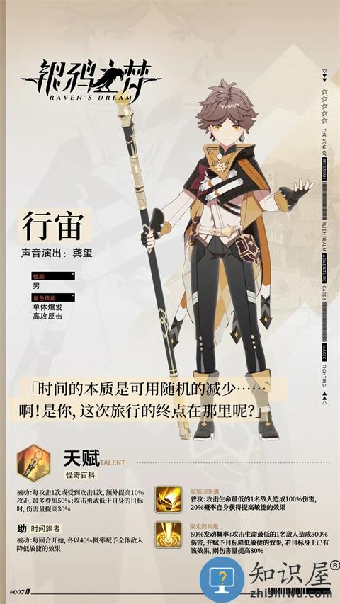 行宙的技能特点是【单体爆发】【高攻反击】,他的每次攻击都能额外叠加攻击加成,伤害值越来越强;同时,需要有好的输出,还需要先发制人,所以行宙不仅能自身获得敏捷,还能降低敌人的敏捷。怎么看都是一名主打爆发输出的强手。