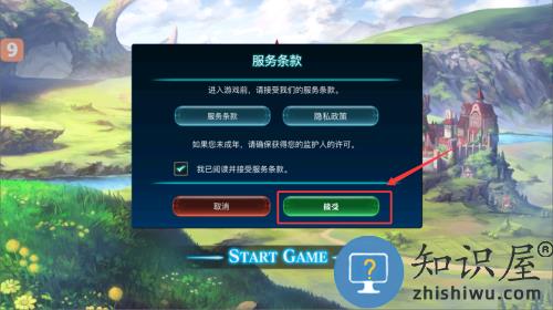1、阅读服务条款后,点击红框标注的绿色接受按钮继续。