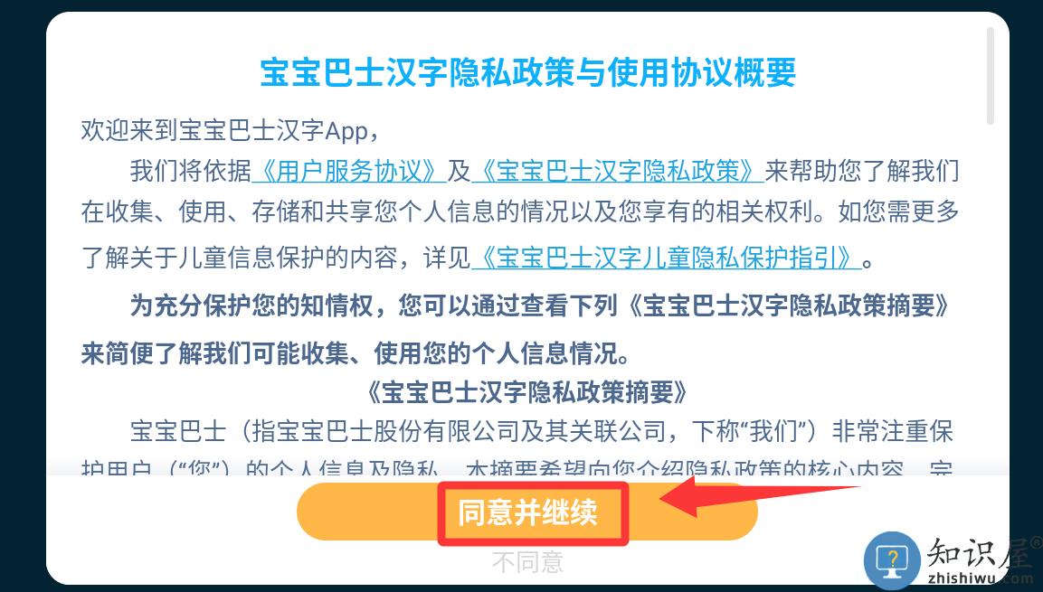 1、点击隐私政策与使用协议概要里的同意并继续。