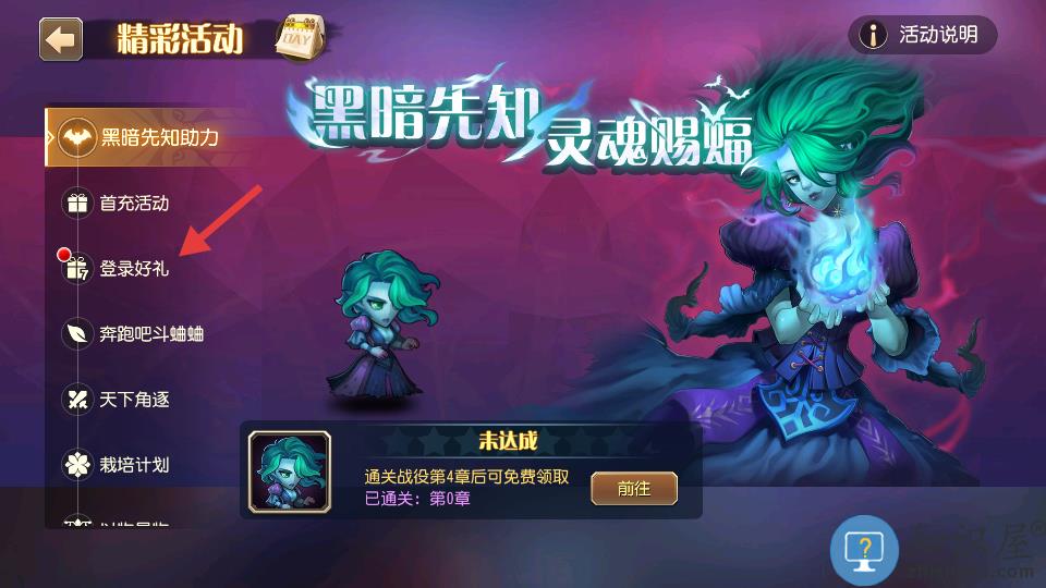 2、点击左侧菜单的登录好礼。