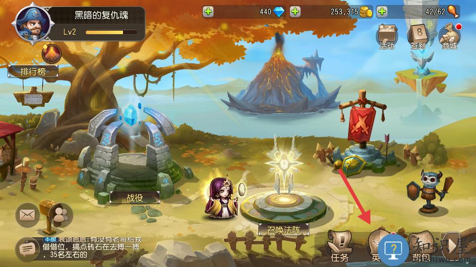 1、主界面点击下方的英雄。
