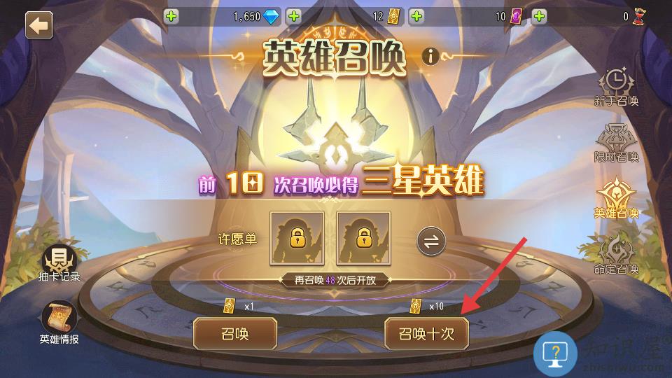 2、点击右侧的英雄召唤。
