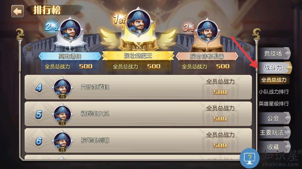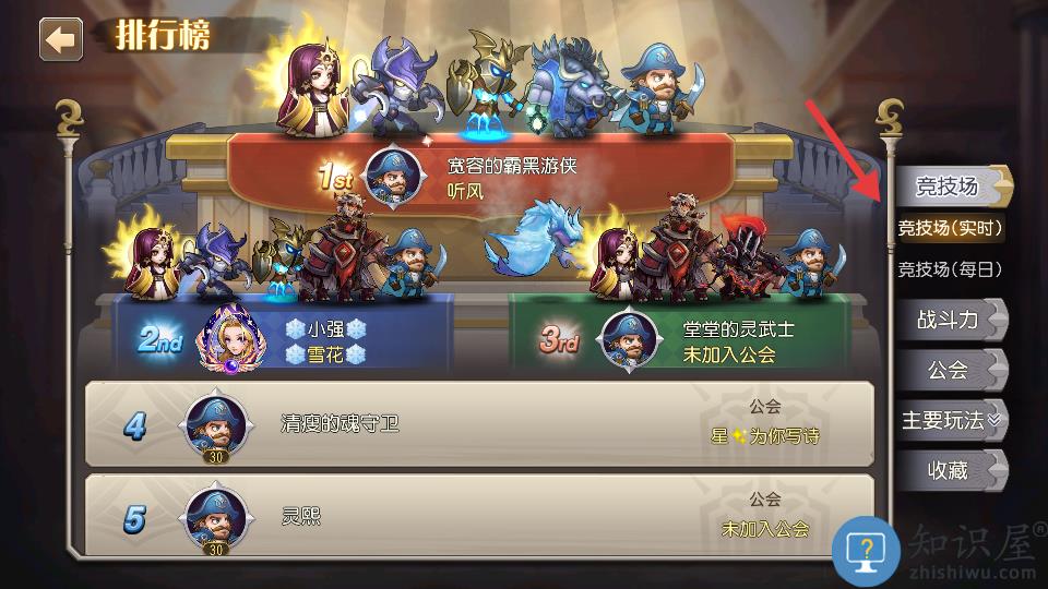 1、竞技场排行榜实时展示全服玩家排名情况。