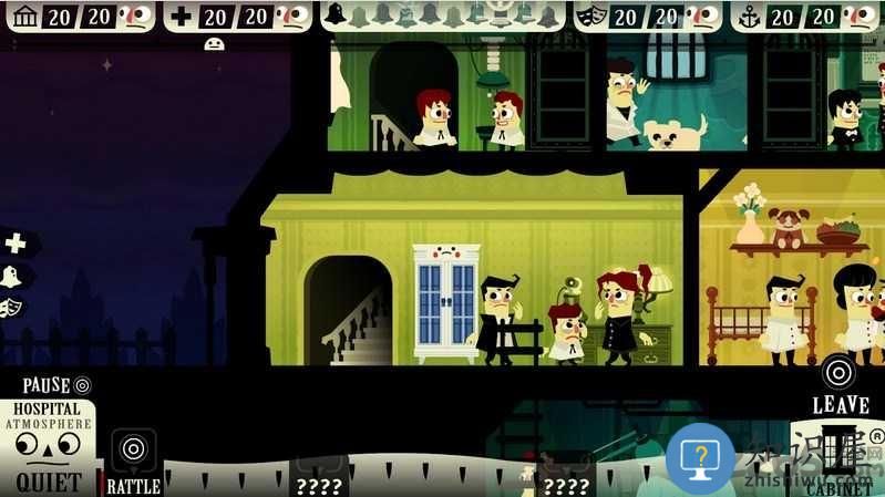 ▼被惊吓后的人逃跑的方式是有一定规律的,轻度惊吓的人只会转身走开,去隔壁房;惊吓程度较高的人则会转身快速走开;很高程度的惊吓,对象会惊呼后转身跑开,如隔壁有楼梯则会走楼梯;最高程度惊吓后的人会惊声尖叫着转身快速逃跑,如果受到连续的重度惊吓则可能直接跳窗死掉。因此,想要尽快完成游戏,就要充分利用好这些规律,想方设法通过不同程度的惊吓把屋子里的人逐渐驱赶到1楼,最终让他们从大门处逃走;