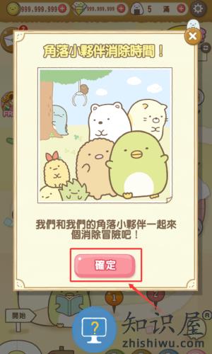 1、点击红框标注的確定按钮,开始角落小伙伴消除游戏。