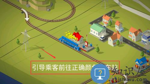 1、根据红框提示引导乘客前往对应颜色车站,按箭头方向操作。
