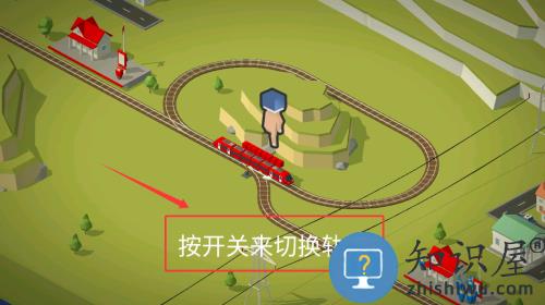2、点击红框标注的轨道切换开关,改变火车行驶路线。