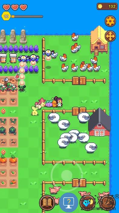 [牧场],可爱的小动物们每隔一段时间就会有产出,无人机可帮助收货,你可以搬起管理小动物。
