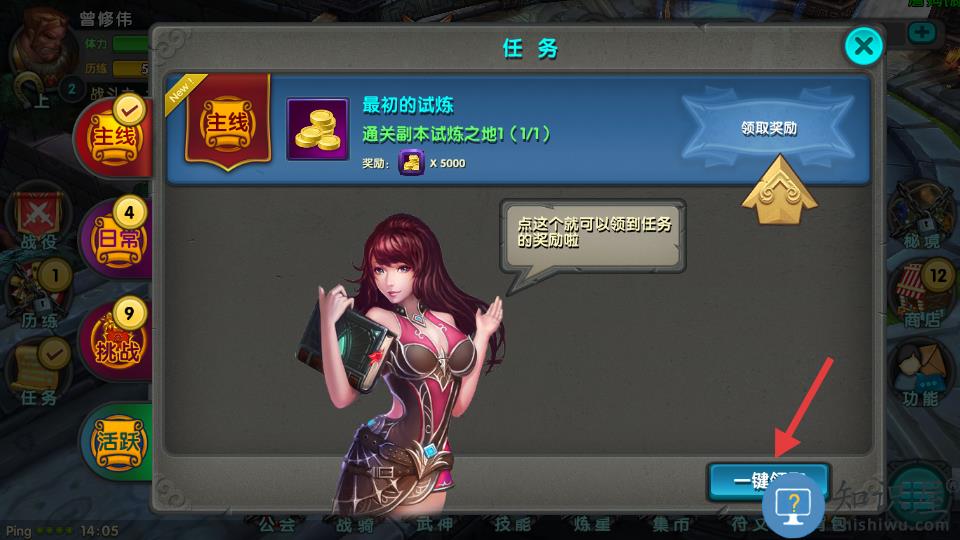 2、在任务界面先点击一键领取奖励。