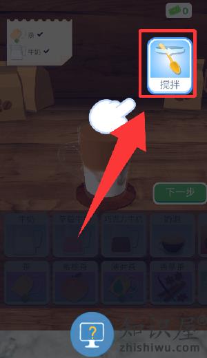 1、根据左上角的提升把牛奶喝茶添加到杯子。