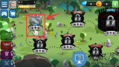 3、改好名字点击红色框框里第一关并进入。
