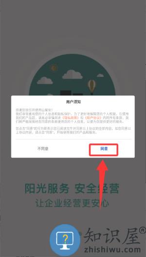 1、在山餐安中点击"同意"用户须知,进入引导页面。