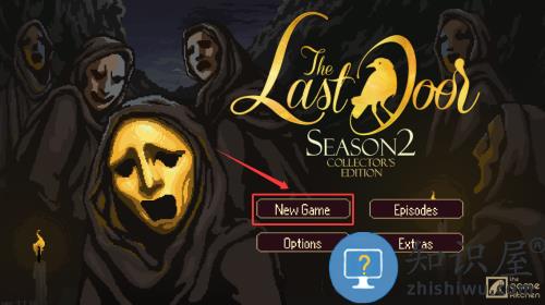 1、点击红框箭头指向的新游戏按钮,开始最后一扇门游戏。