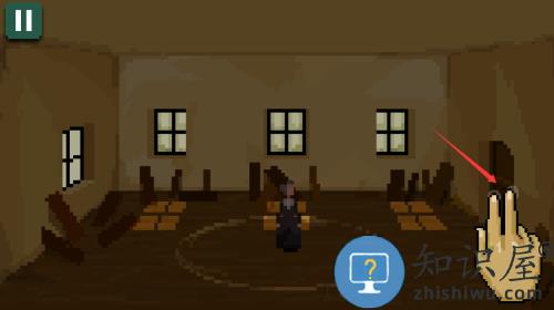 3、根据红框箭头提示,点击黑色门状结构进入房间。