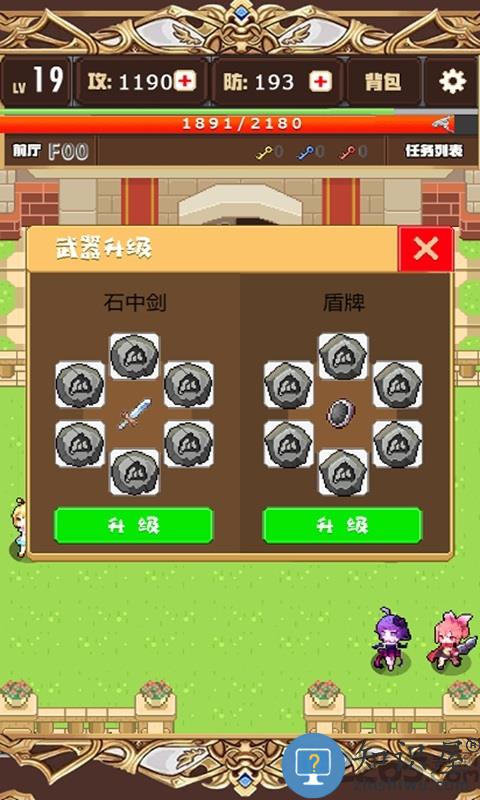 2、通过公主的助力提升角色属性并强化武器盾牌等战斗装备。