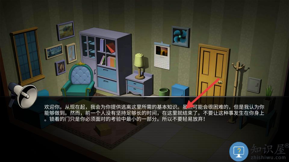 从现在起,我会为你提供逃离这里所需的基本知识。虽然可能会很困难的,但是我认为你能够做到。然而,前一个人没有坚持足够长的时间,在这里就结束了。不要让这种事发生在你身上。锁着的门只是你必须面对的考验中最小的一部分。所以不要轻易放弃!