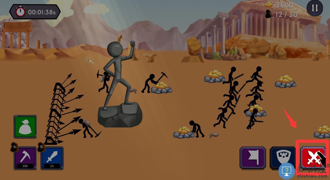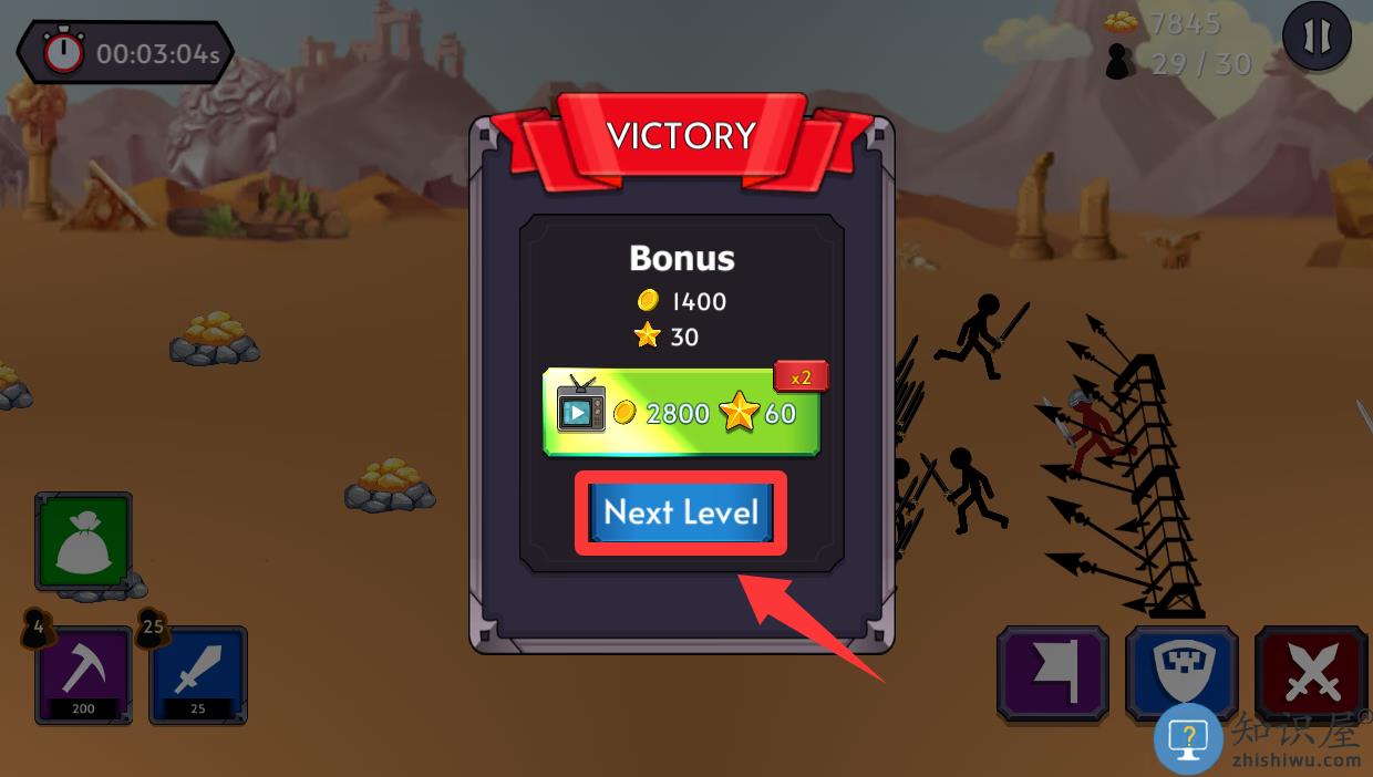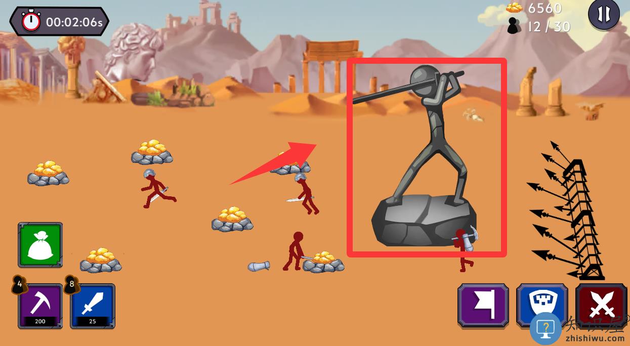 - 提高武装部队的战斗能力,然后使用您的策略在战争中击败敌人的火柴人。