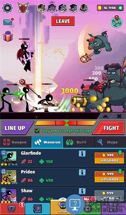 火柴人英雄怪物时代是款玩法独特的放置类闯关游戏。在游戏中玩家可以招募到不同能力的火柴人,他们为了战胜强大的怪物而进行了变异,也获得了怪物一般的能力。你的火柴人会自动战斗,所以你只要不同的提升他们的等级就可以了,非常的简单。