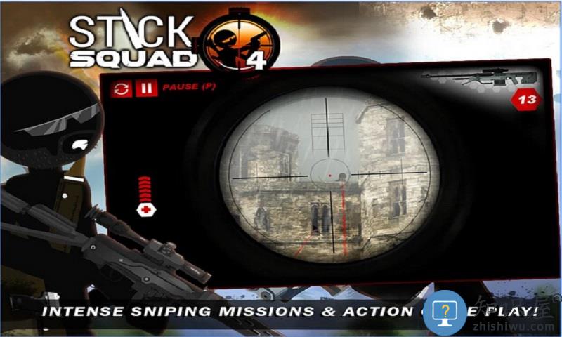 《火柴人狙击手4》是Brutal Studio公司出产的Stick Squad的续作。是一款以火柴人为主角的狙击类游戏。游戏里不仅仅只有狙击的任务,还有完整的连续性的剧情。玩家需要从一名狙击手菜鸟逐渐成长成为一名百发百中的老手!还能利用赏金更新自己的装备,以更好完成自己的任务。