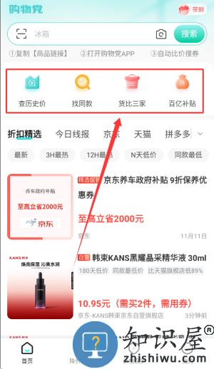 3、首页提供历史价格查询、同款商品搜索、多平台比价及百亿补贴活动。