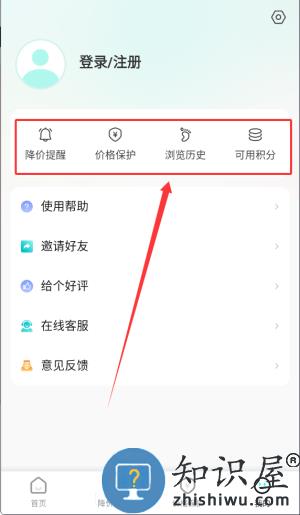 4、我的页面集中管理降价提醒、价保申请、历史浏览记录及可用积分查询。
