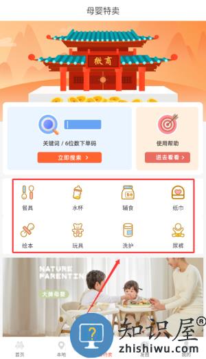 4、母婴特卖专区销售儿童餐具、水杯、辅食、纸巾、绘本与玩具等用品。