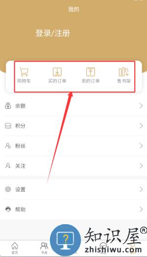 4、我的页面集中管理购物车、购买订单、销售记录及个人书架内容。