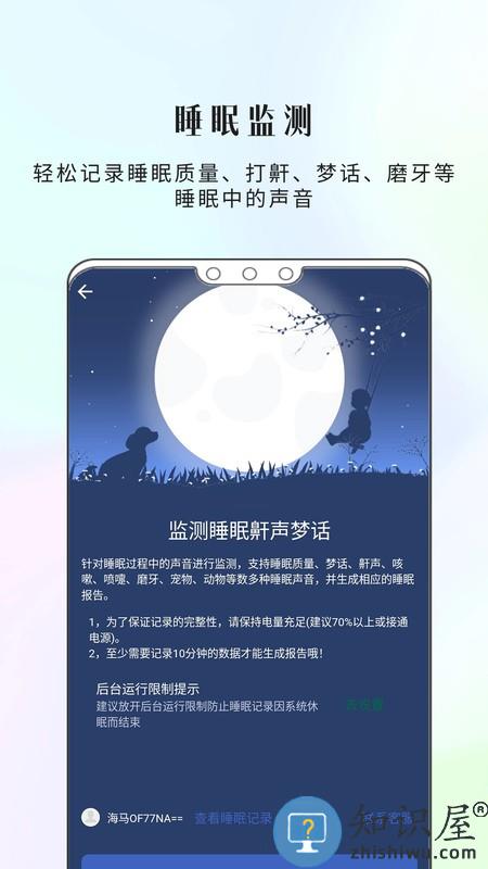 睡眠监测功能,针对睡眠过程中的声音进行监测,支持睡眠评分、梦话、鼾声、咳嗽、喷嚏、磨牙、宠物、动物等数多种睡眠过程中的产生的声音,并生成相应的睡眠报告,支持音频文件同步到云存储。