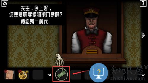 2、将红框内一美元纸币,拖给售票员购买博物馆门票。