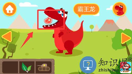 3、进入游戏点击左下角的肉给霸王龙吃。
