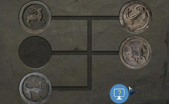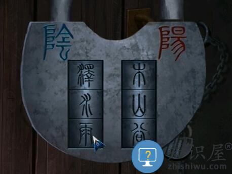3、再根据纸卷的线索去敲击门扣,打开门调整叶片位置如下,打开箱子,得到木槌、钥匙跟书,用钥匙打开门