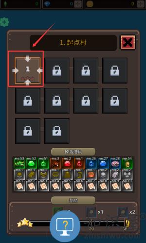 1、在关卡界面,点击红框标注的第一关图标,开始起点村任务。