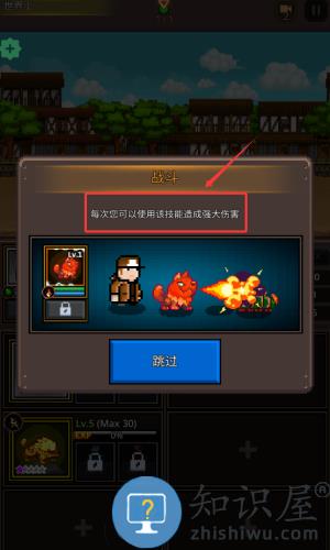 2、在战斗提示界面,点击红框标注的跳过按钮,自动完成战斗。