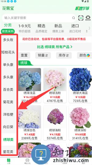 2、返回首页,在左侧分类栏点选绣球类查看商品。