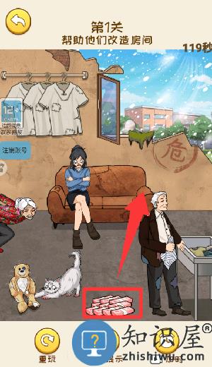 3、点击红色框框里的钞票移动到墙上帮它们改造。