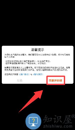 1、点击温馨提示里的同意并继续。