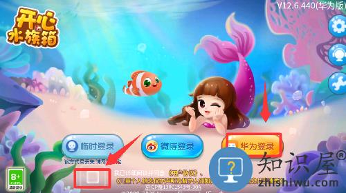 2、进入游戏界面在红色框框里打√然后选择华为登录。