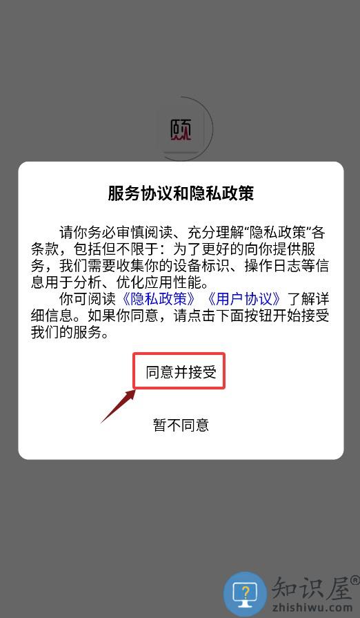 1、初次启动应用需点击同意并继续,确认后方可进入登录界面。