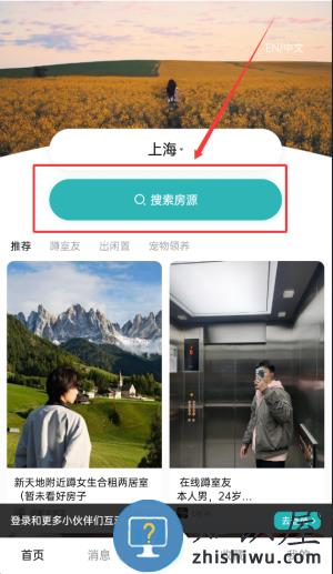 2、在主页面选择城市,并通过搜索框查找或浏览推荐房源信息。