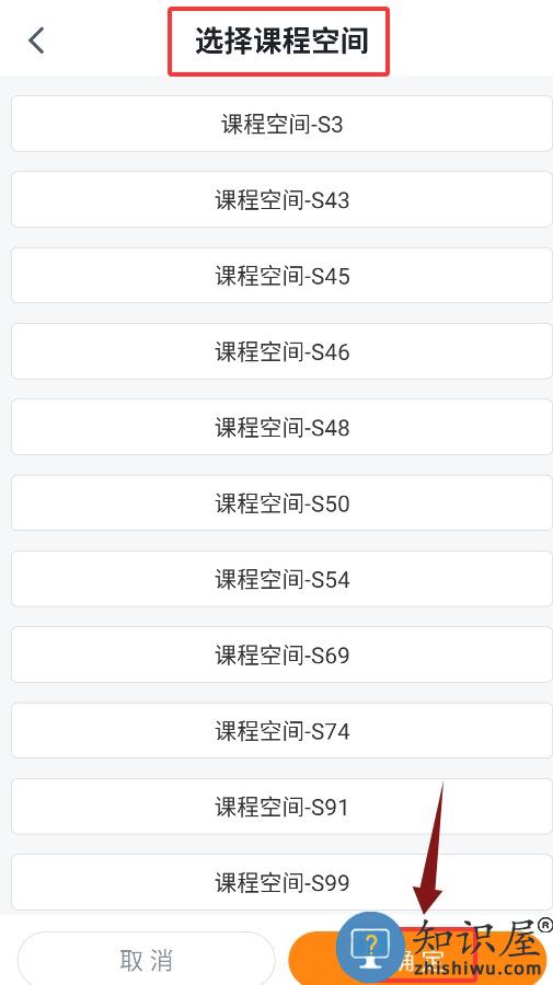 2、在课程空间选择界面,选定所需空间后点击确定进入。
