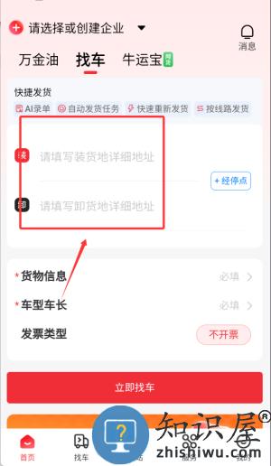 2、随后输入装货地与卸货点信息,系统将自动筛选周边可用货车资源。