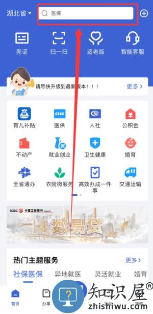 参保人可在“鄂汇办”APP首页顶部的搜索框内输入查询内容,例如“医保”,即可根据自身需求选择服务内容进行查询。