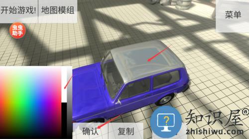 1、在色彩界面,点击红框箭头指向的蓝色,为汽车上色。