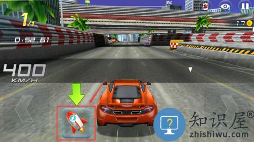 2、在合适时机,点击红框火箭道具图标进行加速。