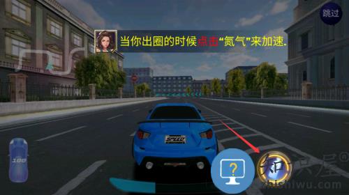 2、出弯时,点击红框氮气瓶图标进行加速。