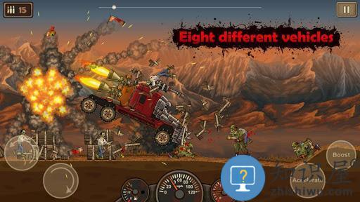 游戏的操作很简单,按下右边的加速按钮,汽车就启动了。玩家需要做的就是通过汽车左边的控制按钮控制汽车的平衡。玩家在游戏中的目的就是要越过重重的僵尸群,朝着下一个村落进发。所以请狠命的将车往僵尸们身上撞吧。游戏可不是一味的狂奔,车辆都有汽油的限制,一旦汽油消耗完了或者车辆完全停下来,挑战也就失败了。当然失败并没有关系,将挑战得来的钱拿去升级装备吧。升级之后又可以开始全新的一天的挑战。