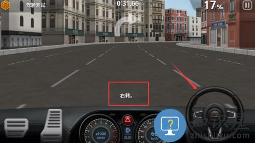 2、按红框提示右转,控制车辆在路口转向。