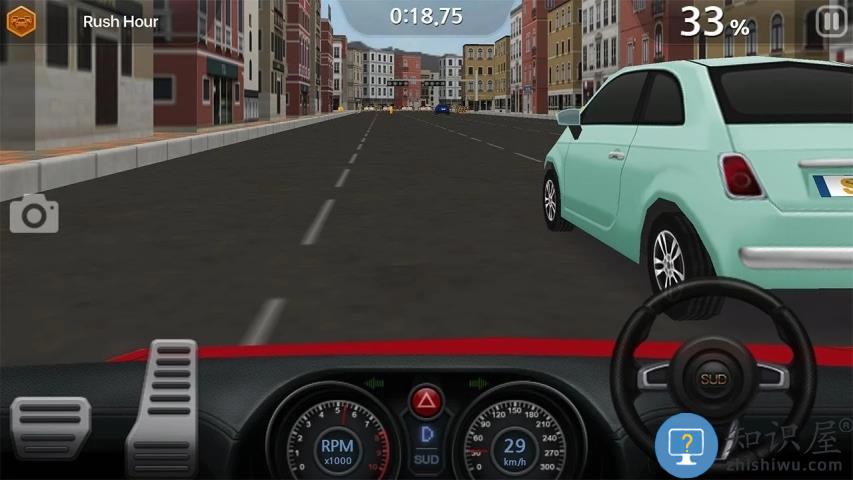 1、根据红框提示,按下右下角油门踏板开车。