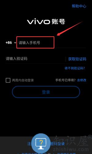 2、在vivo账号登录界面,输入手机号并获取验证码。