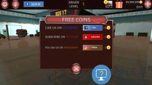 3、在免费硬币界面,点击社交媒体按钮获取金币。